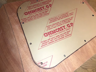 First, the cut lines for the windows are marked. To get the curves right on the corners, I used the pre-cut acrylic windows as a guide.